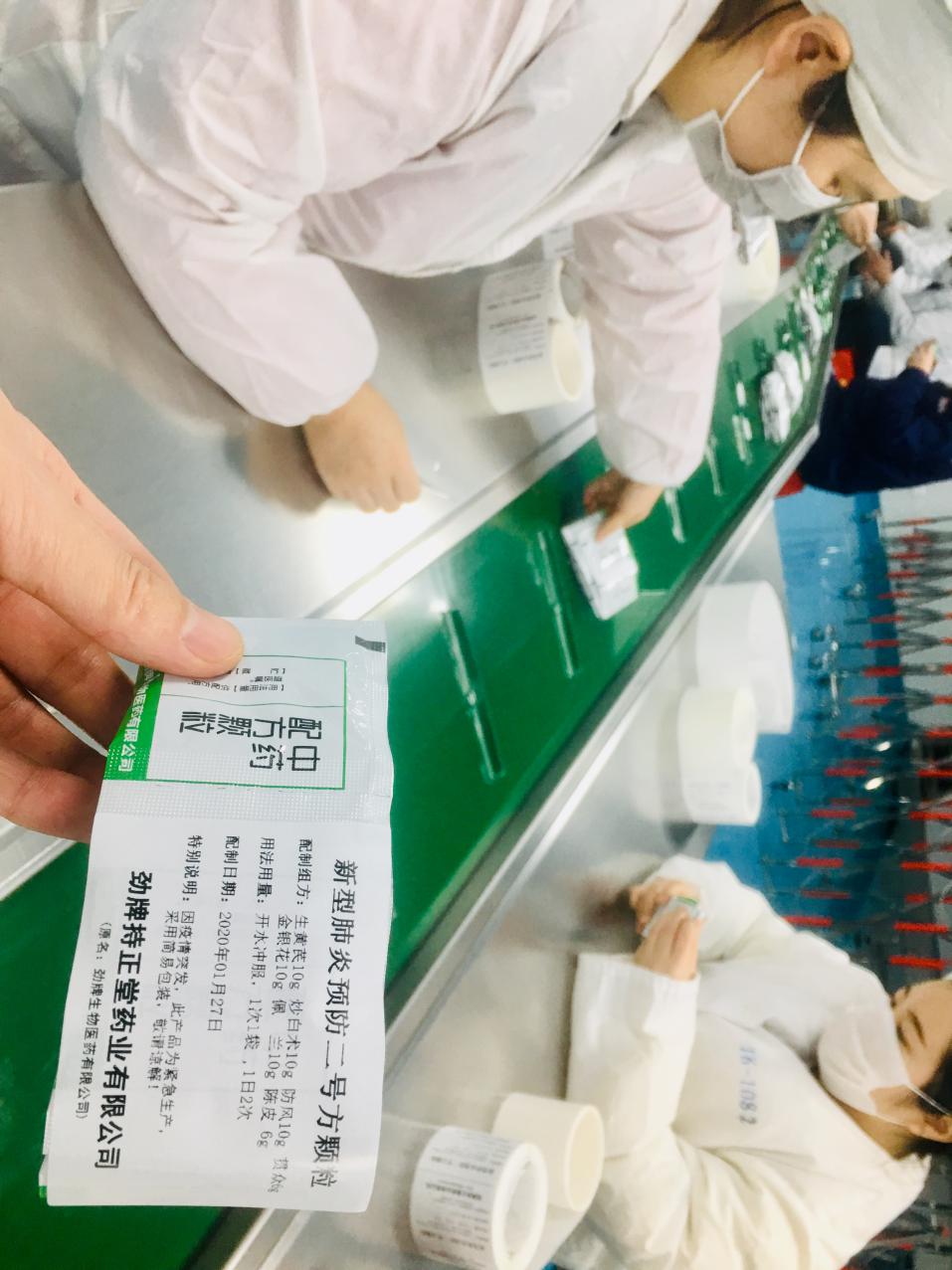 据介绍,预计正月十五前,劲牌持正堂药业将完成100万服预防新型冠状病毒肺炎中药配方颗粒的生产包装工作。